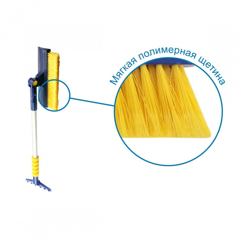 Щетка изготовлена с применением распушенной щетины, что позволяет бережно и эффективно очистить кузов и стекла от снега.