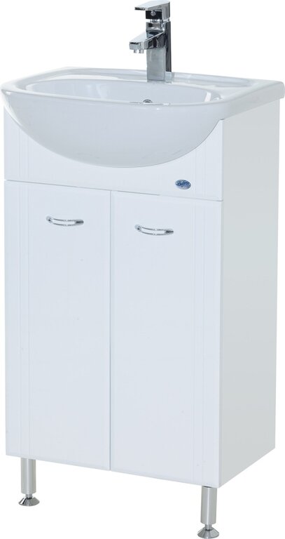 Напольная тумба для ванной комнаты Bellezza Уют 50 белая. Изготовленная из влагостойкого материала она без труда сможет оказать сопротивление таким распространенным проблемам в данном помещении, как грибок, плесень. Устойчивые ножки, благодаря специальным насадкам, еще и обеспечат надежную защиту от царапин полу. За дверками, которые украшают декоративные ручки из хромированной стали, можно разместить бытовую химию и прочие приспособления и инструменты. Размеры: Тумба (ш/в/г): 490x840x300 ммКомплектацияТумба под раковину - 1 шт. Инструкция - 1 шт.
