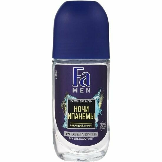 Ощути надежную защиту дезодорантов с мужским характером от Fa men. Твой секрет уверенности в себе! Почувствуй пульсацию бразильских ночей с бодрящим ароматом тропических фруктов. Зарядись энергией бразильских ритмов! Роликовый дезодорант. До 24 часов защиты без солей алюминия. Дерматологически протестирован.