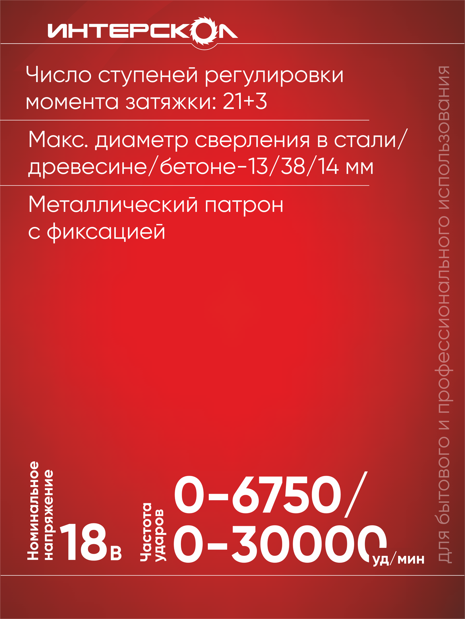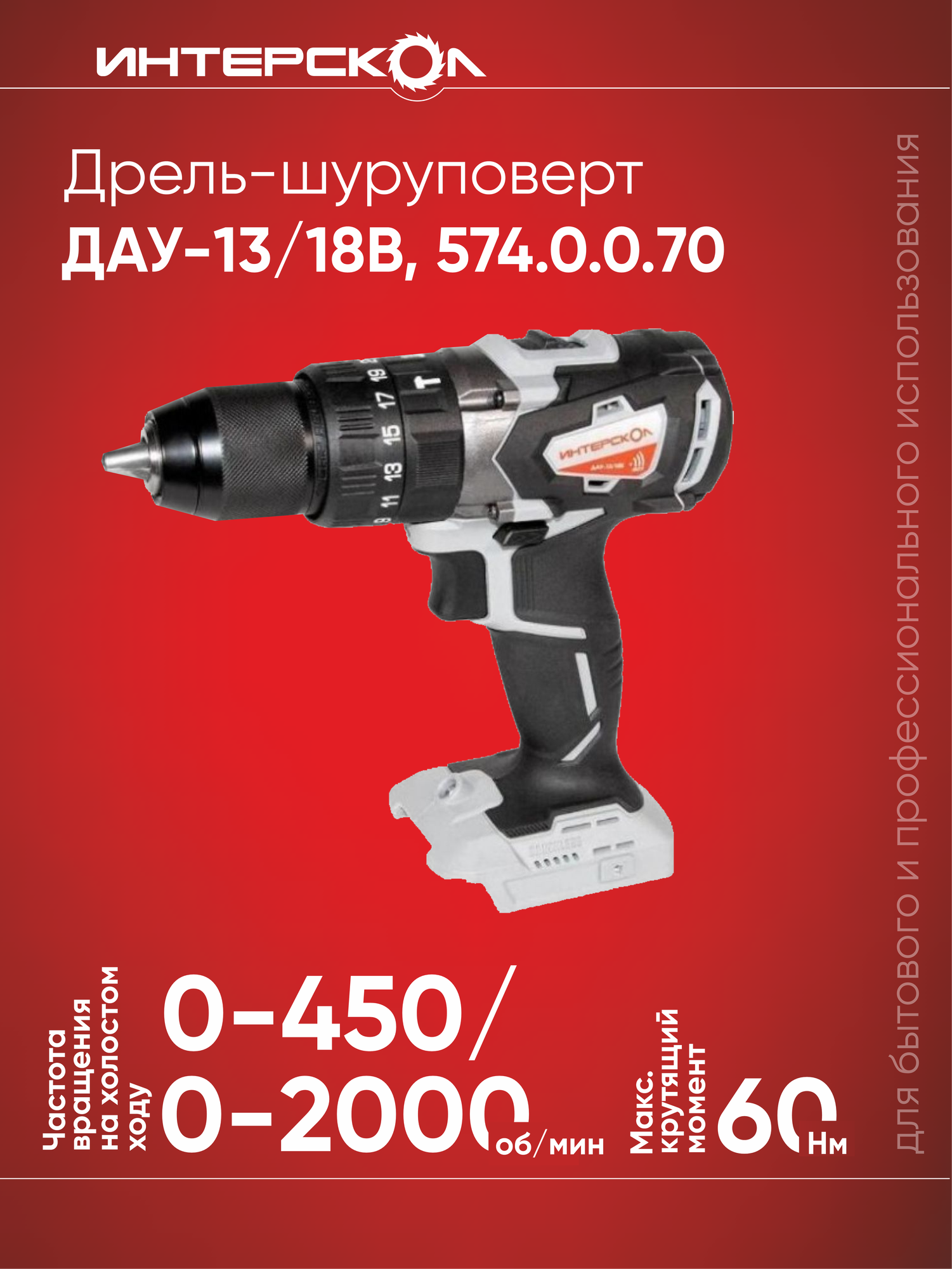 Аккумуляторная дрель-шуруповерт ИНТЕРСКОЛ ДАУ-13/18В ударная (без акк, без з/у) предназначена для заворачивания/отворачивания винтов и шурупов, сверления отверстий в различных конструкционных материалах (в том числе: металле, дереве, пластмассе). Машина позволяет сверлить отверстия в кирпиче и бетоне легких марок, c использованием функции удара. Управление скоростью вращения нажатием на курок.
