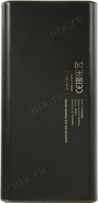 Без труда зарядить планшет или смартфон можно, используя внешний аккумулятор (Power Bank) Canyon PB-106, выполненный из прочного пластика. Удобен в дороге – не занимает много места, имеет вес менее 250 г.Имеет широкий набор защитных функций: от перезаряда, короткого замыкания, перегрева, сверхтока, перенапряжения.Литий-полимерная батарея емкостью 10000 мAч позволяет обеспечить полноценную зарядку девайсов 2-4 раза в зависимости от модели.Контроль уровня энергии самой батареи не представляет сложности и осуществляется с помощью LED-индикатора.Внешний аккумулятор (Power Bank) Canyon PB-106 укомплектован входными разъемами micro USB и Type-C, что расширяет перечень моделей внешних устройств, которые можно заряжать. Разъемы USB позволяют производить одновременную зарядку двух устройств. Дополнительным удобством является включенный в комплект кабель для зарядки длиной 30 см.