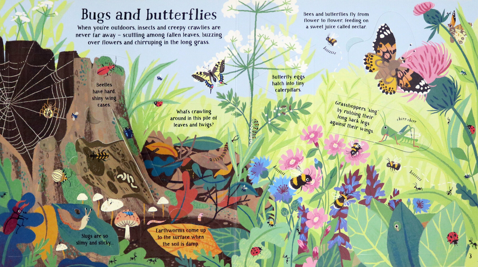 Discover the magical world of nature in this information book for young children, with over 80 flaps to lift. There are woods, rivers and ponds to explore, and animals to discover under the ground, hiding in trees and rustling in the bushes. There’s information on how plants grow, habitats and nature spotting and links to websites to find out more.