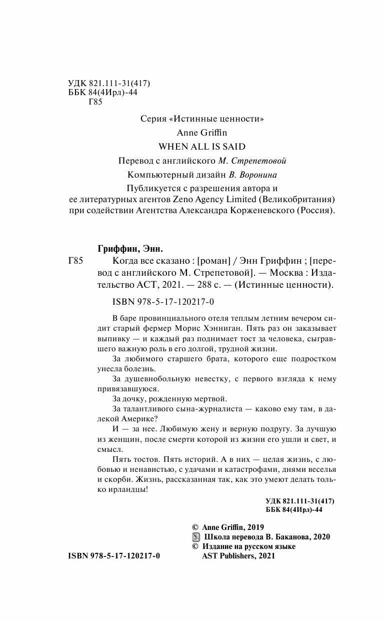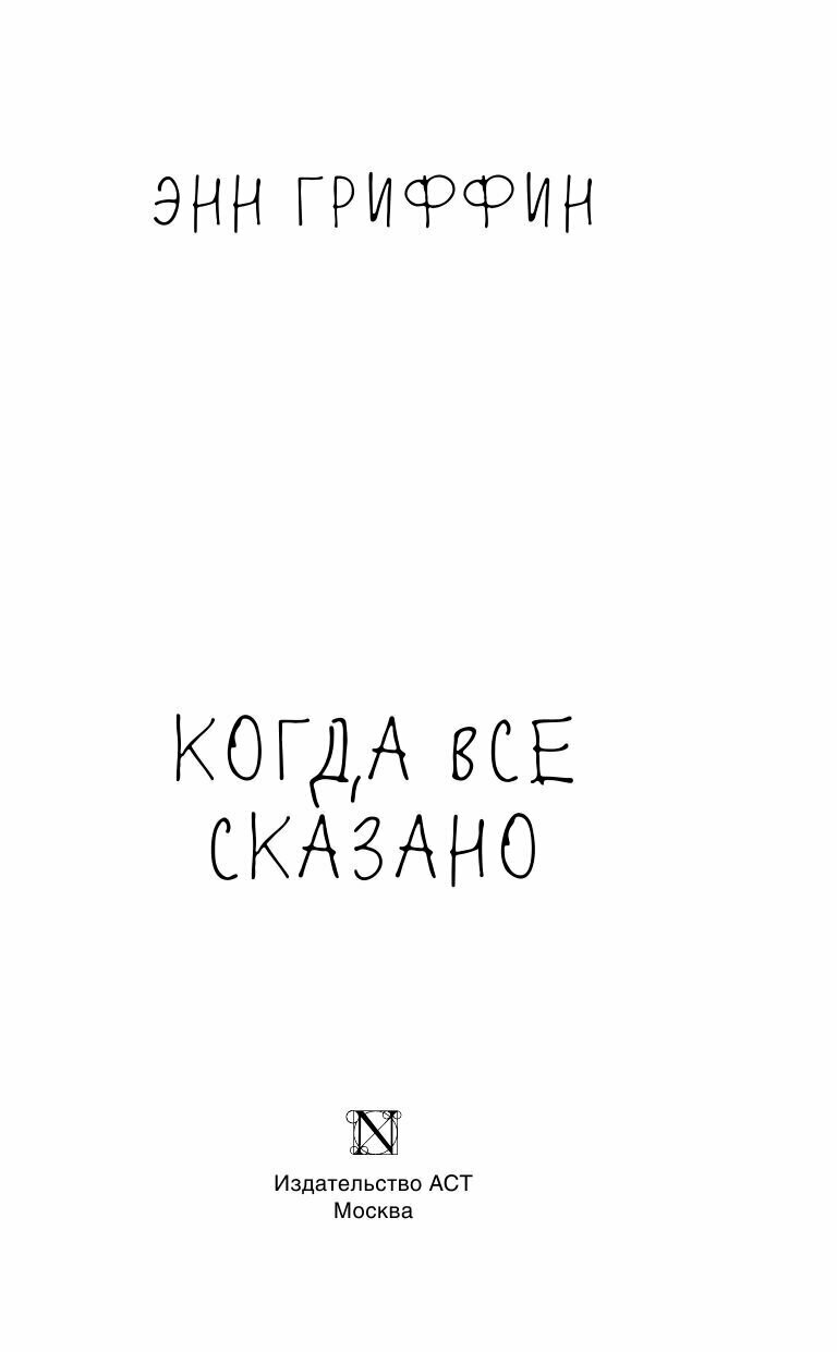 Книга: Когда все сказано (Энн Гриффин); Издательство АСТ, 2019