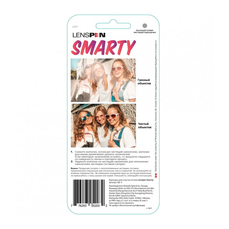 Новая разработка лидера в производстве средств для очистки оптики компании Lenspen мини-карандаш Smarty для очистки объективов смартфонов. Современные модели смартфонов позволяют снимать фото и видеоконтент высочайшего качества. Сейчас вашему смартфону доступен любой жанр съемки: стрит, природа, портрет, ночная съемка, съемка детей, животных, дружеская вечеринка и т.п. Лишь одно может стать между вами и творчеством грязная оптика объективов. Карандаш Smarty легко справится с любыми загрязнениями. В карандаше применен запатентованный сухой углеродный состав с неограниченным сроком годности. Завинчивающийся колпачок пополняет наконечник чистящим составом и одновременно защищает его. Проверните его на пол-оборота для пополнения наконечника чистящим составом. Размер чистящей подушки 4 мм. Безопасен для всех типов оптических линз и покрытий. Долговечен до 500 использований. Не используйте на влажных поверхностях. Во избежание попадания жира на чистящий наконечник не прикасайтесь к нему руками. Smarty насколько компактный (53х14 мм), что вы можете положить его в карман, косметичку, клатч и носить всегда с собой.