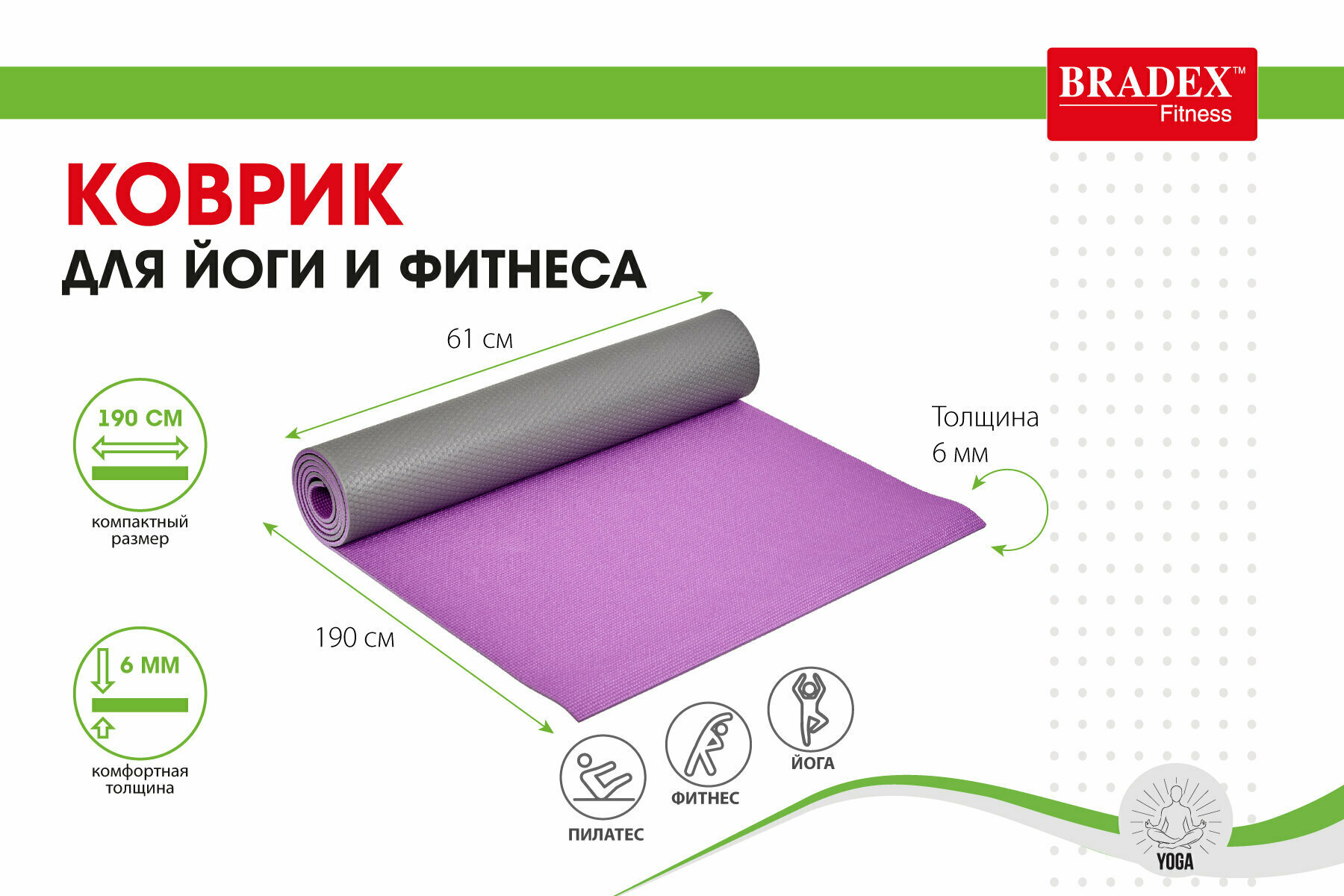 Коврик для фитнесса и йоги BRADEX SF 0689 (размер: 190х61 см)