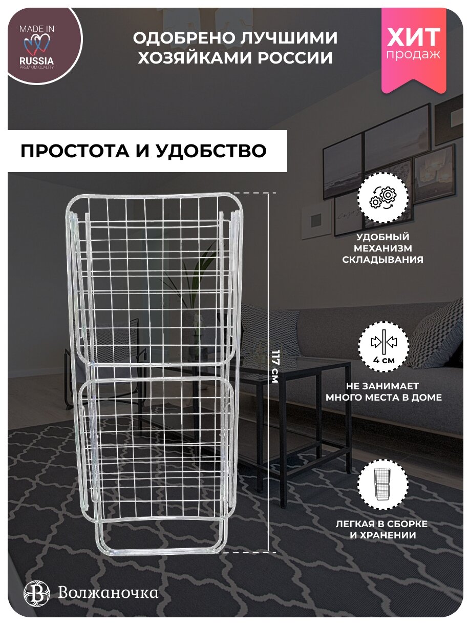 Сушилка для белья напольная вертикальная раздвижная складная выдвижная большая "Сказка" 25 м, с дополнительными крыльями, цвет белый Наша напольная сушилка черная для белья на балкон должна прослужить Вам много лет. Сушилка для одежды изготовлена из толстостенной профильной трубы и откалиброванного стального прута. Сушилка для одежды покрашена антикоррозийным, противоударным, полимерным покрытием. Сушилка для вещей имеет классический черный лаковый цвет сушилки для белья подойдет к любому интерьеру. Очень простой механизм раскладывания. В собранном виде занимает мало места. Удобна для использования на балконе и внутри помещений.