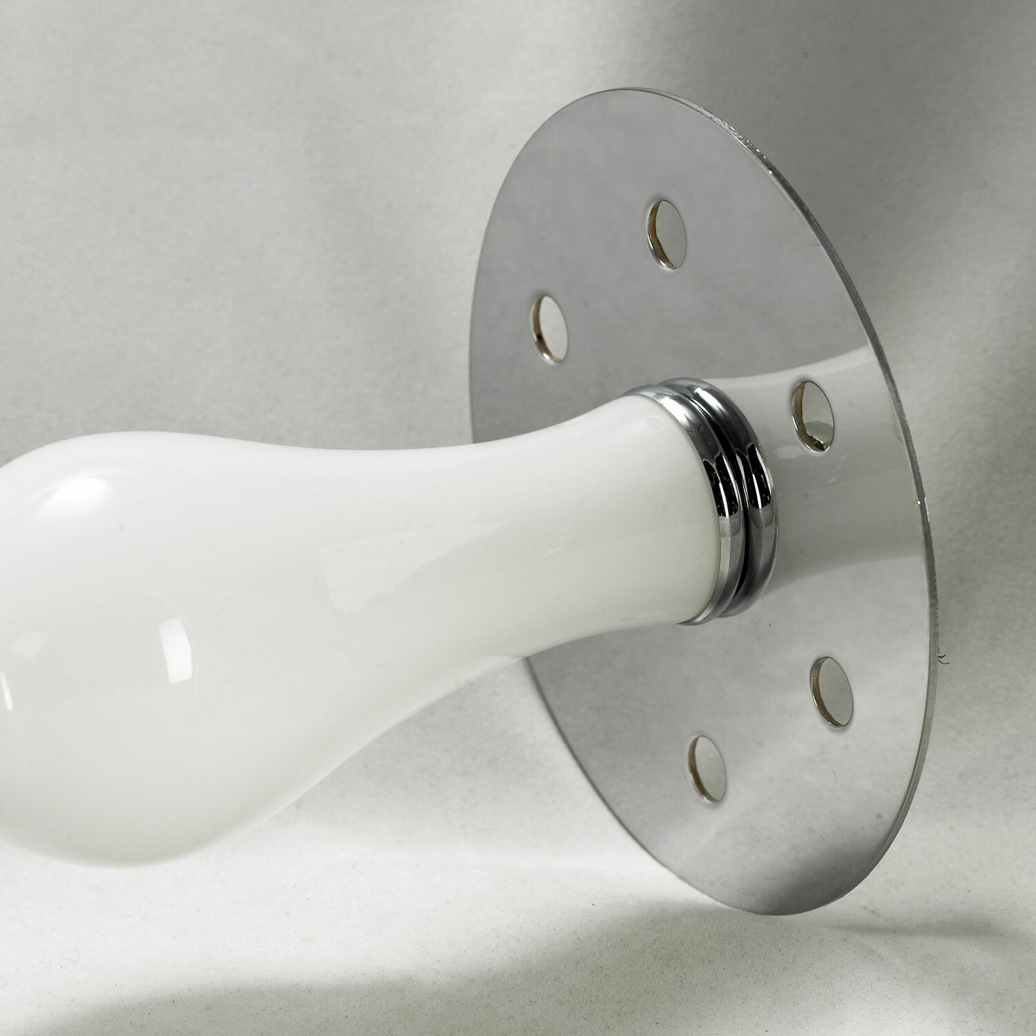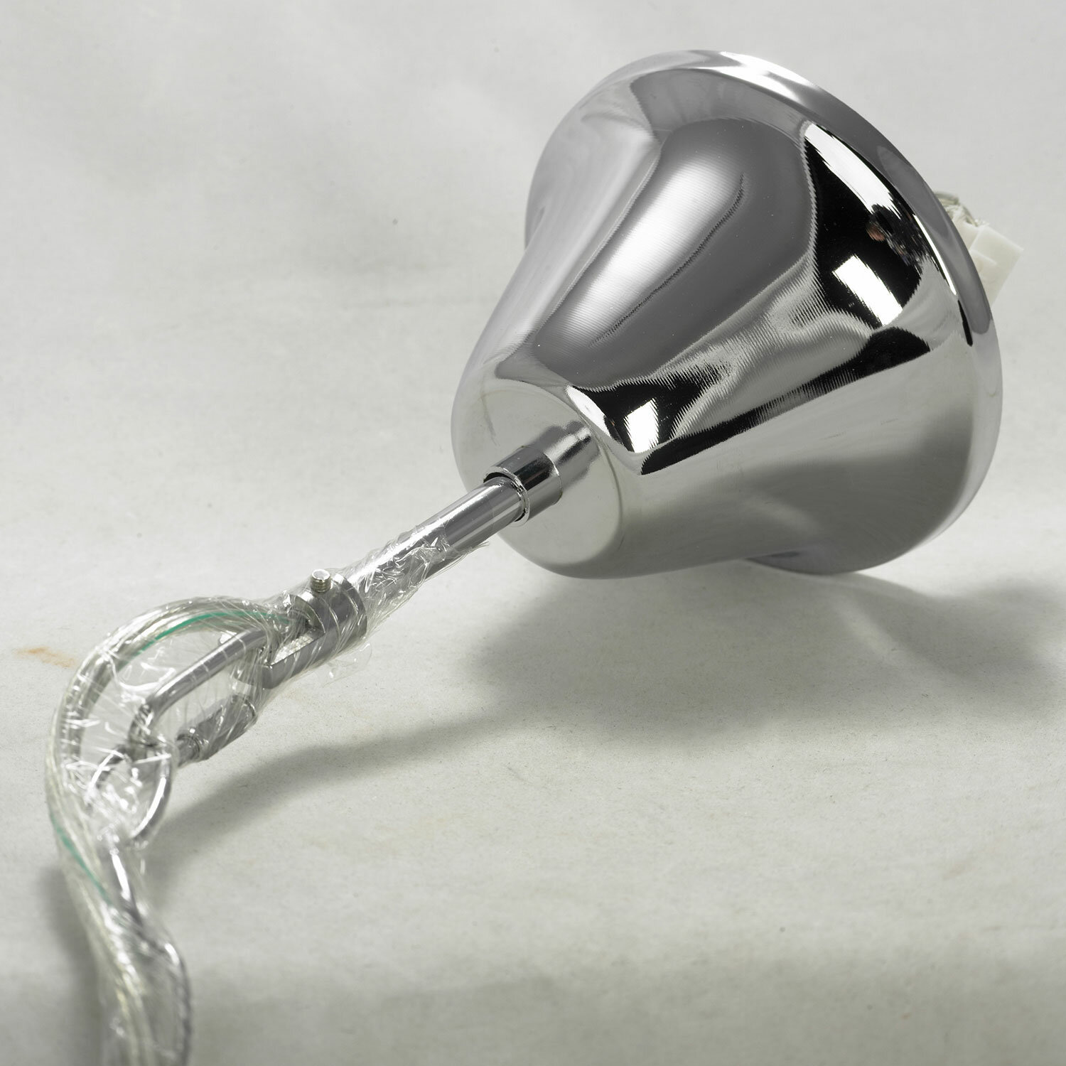 Белые вытянутые приталенные вверху плафоны направленные вверх - дизайнерский изыск. Стеклянные белые рожки и каплевидные элементы в центральной части придают законченность дизайнерскому шедевру. В серии представлены подвесные люстры на 6 и на 12 плафонов.