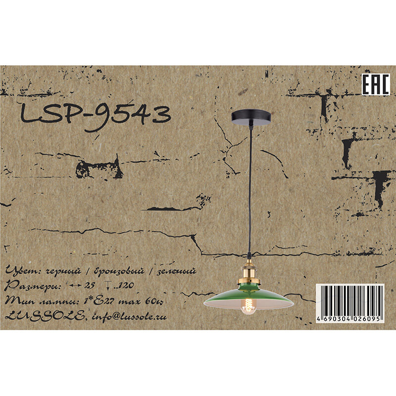 Подвесной светильник LSP-9543 - продукт известной компании Loft (Италия). Имеет максимальную мощность 60 Вт, освещает площадь до 3 кв. м. Отлично подойдет для таких мест, как гостиная, кафе, кухня, над обеденным столом, офис, над кухонным островом. Впишется в интерьеры следующих стилей: лофт.