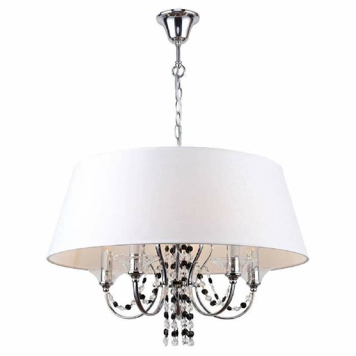 Парящая медуза с пятью лампами. Белый тканевый абажур, закрывающий источники света, сфокусирует свет от ламп непосредственно в точке подвеса и под ней. Поддаваясь законам физике световое пятно над светильником будет меньше,под светильником больше в несколько раз. Такая форма идеально подойдет для акцента света над столом.
