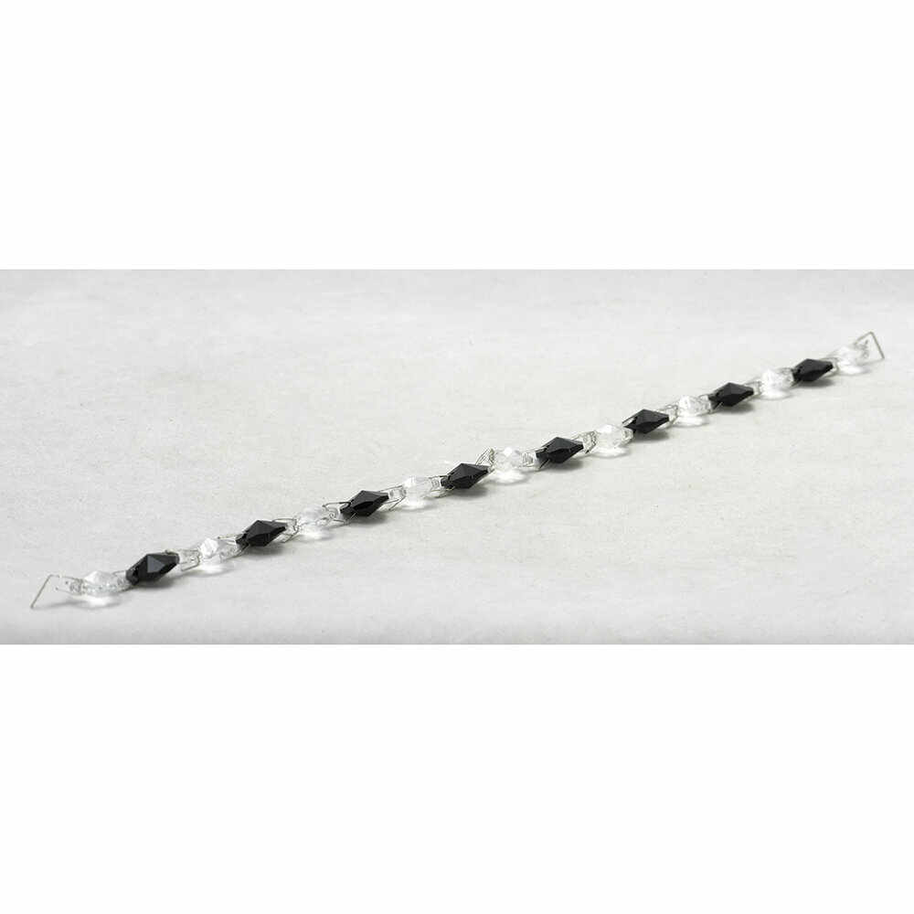 Дизайнерская люстра с среднебольшим количеством плафонов, разделенных по центральной оси подвесками из разноцветных отполированных до блеска кристаллов и хромированной арматурой поставит точку в оформлении помещения.