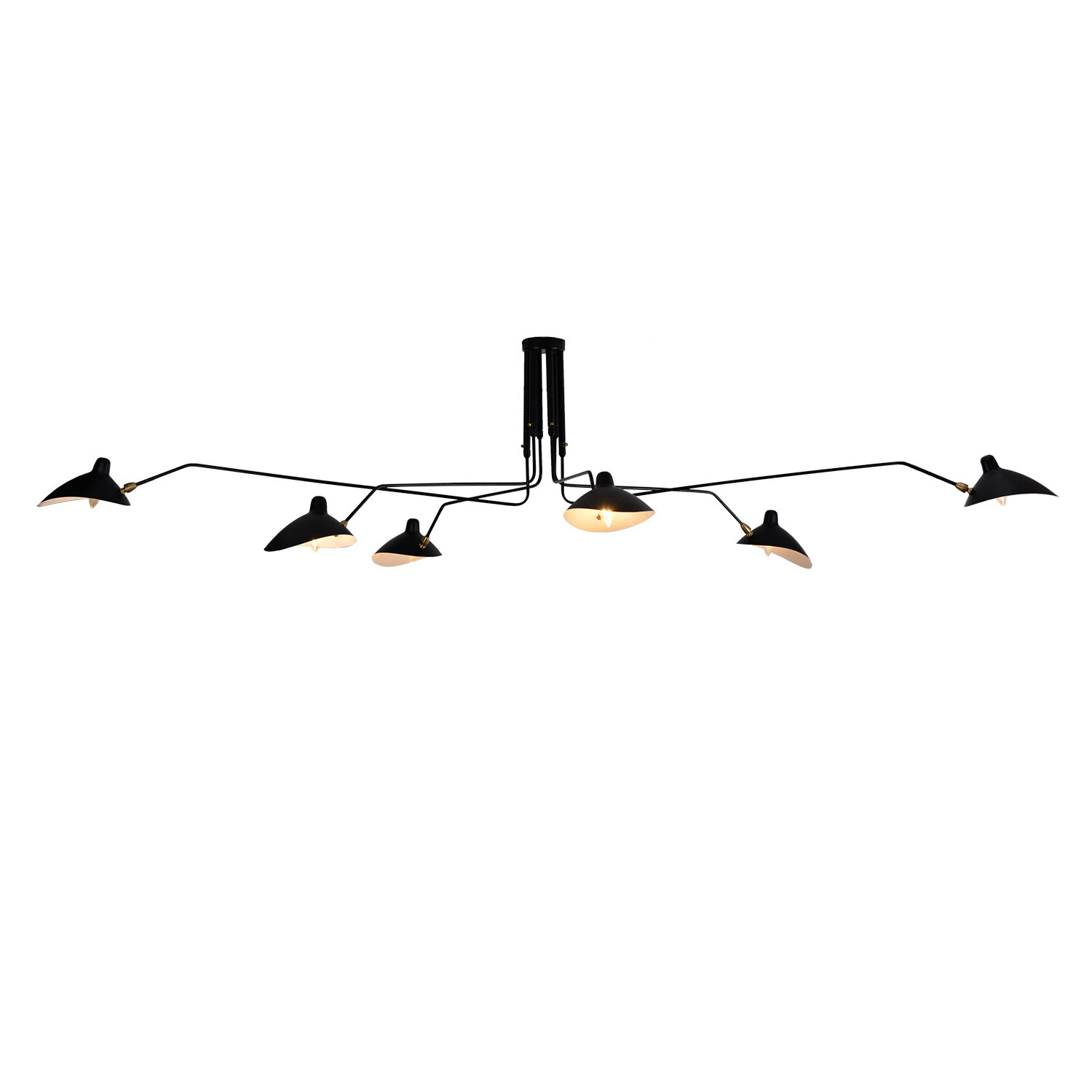 Огромная дизайнерская люстра, или как угодно - светильник с шестью плафонами займет свое место вызовет восторг увидевших это произведение искусства дизайнеров итальянской фабрики Lussole. Преобладающий цвет черный. Вся арматура и верхняя часть плафона черные, а внутренняя отражающая и рассеивающая часть плафона белые.