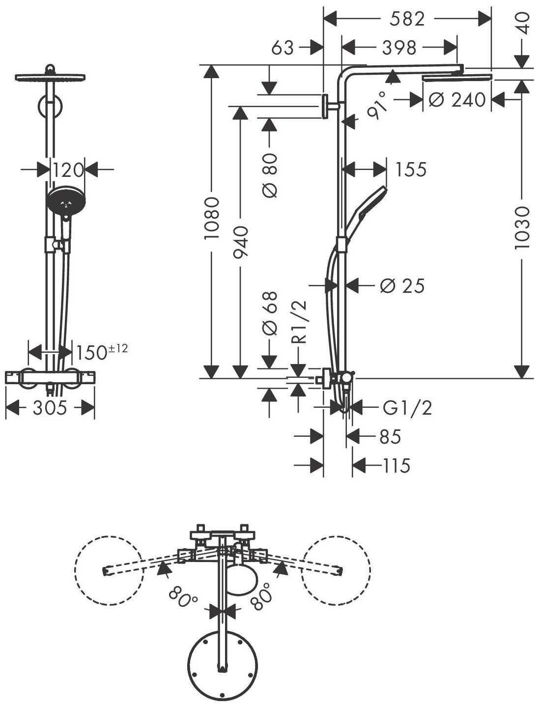 | Габариты верхнего душа | 240 |