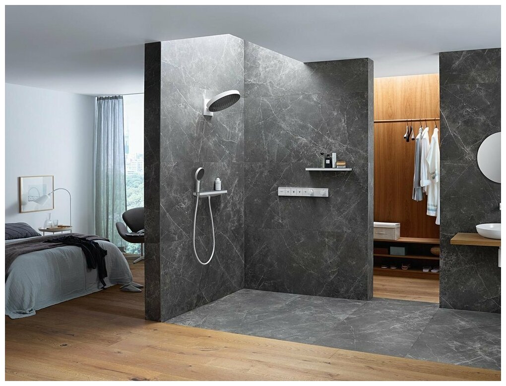 Стеклянная полка Hansgrohe Rainfinity 50 26844000 - выполнена в лаконичном дизайне, который будет органично смотреться в интерьере ванной в современном стиле.