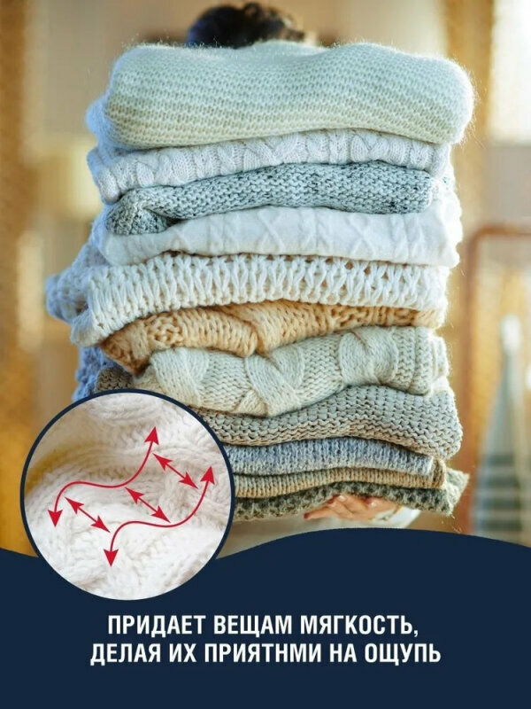 Входящие в состав натуральные экстракты придают вещам мягкость, делают их приятными на ощупь, сохраняют цвет и структуру волокон и оказывают антистатический эффект.