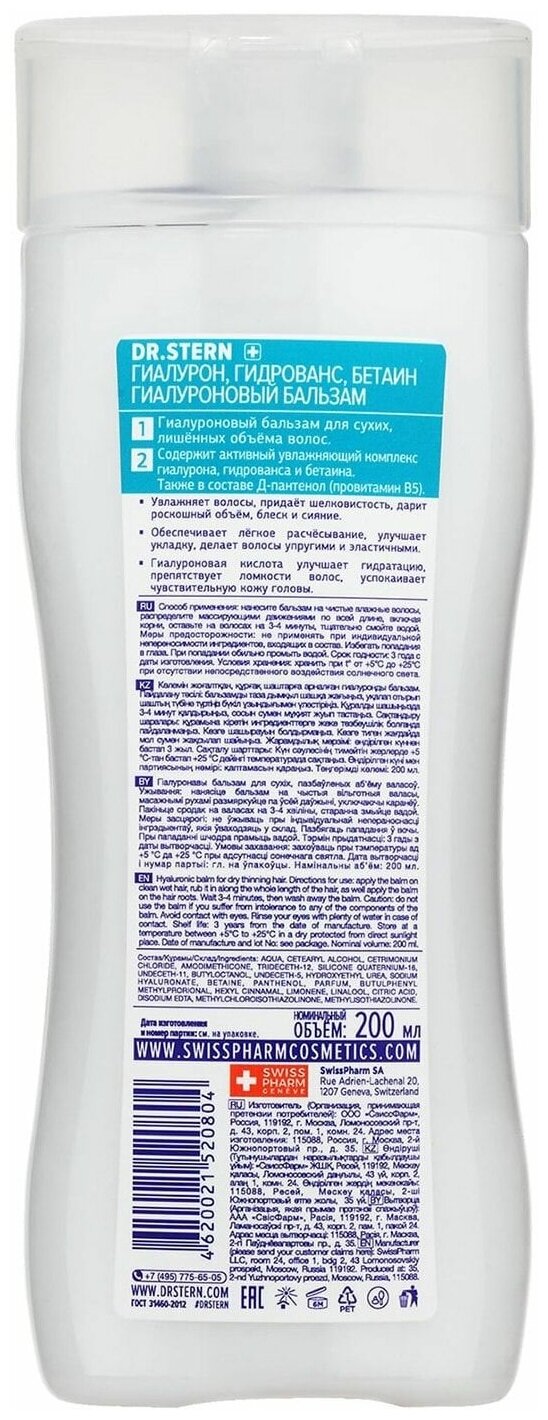 DR. STERN Dr.Stern ГИАЛУРОН ГИДРОВАНС БЕТАИН гиалуроновый бальзам 200мл (DR. STERN ) (Swiss143)