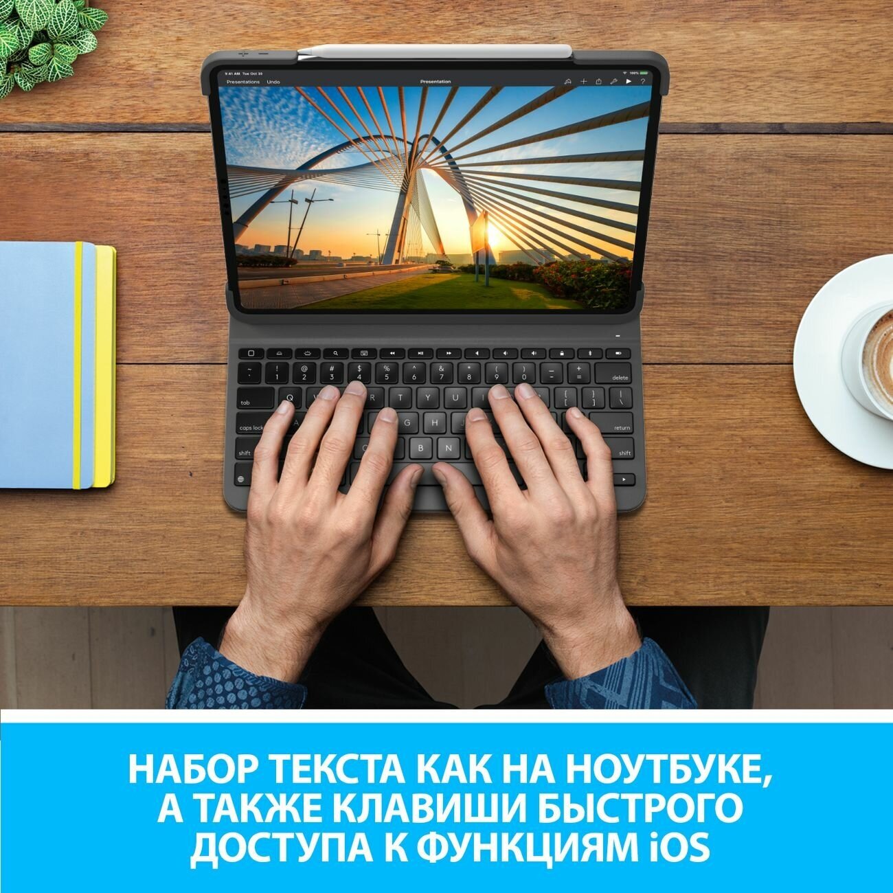 Logitech выполняет сразу 2 функции: защищает планшетный компьютер и превращает его в полноценный ноутбук, предоставляя максимум комфорта при работе с текстом в любой обстановке.