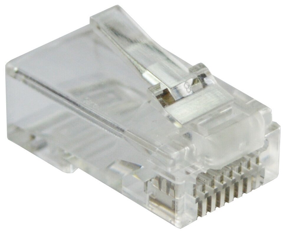 Неэкранированные коннекторы RJ-45 предназначены для сборки неэкранированных соединительных шнуров (патч-кордов). В конструкции коннекторов используются ножи со специальными разъемами, что позволяет применять их для оконцевания как одножильного, так и многожильного (патч-кордового) кабеля.