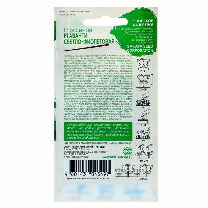 Сервис сравнения цен СкидкаГИД предлагает сравнить цены на товар «Семена глоксинии прекрасной ГАВРИШ Аванти светло-фиолетовая F1 5 шт»