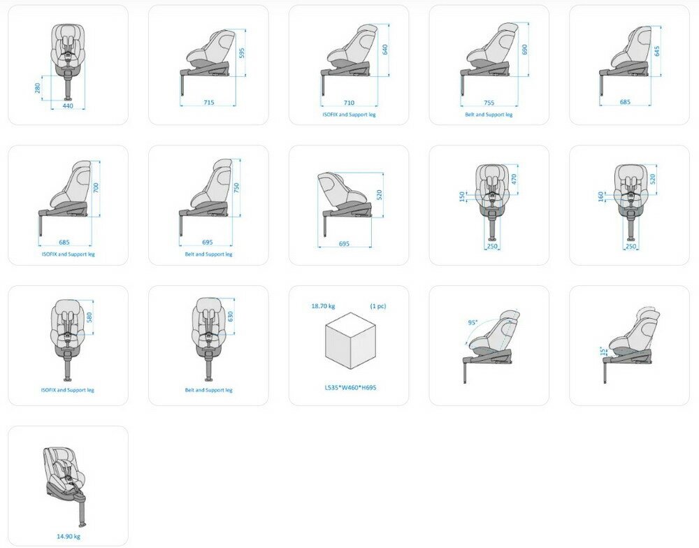 | Особенности | защита от боковых ударов; регулировка внутренних ремней; регулировка высоты подголовника; регулировка наклона спинки; стандарт i-Size; механизм вращения на 360 |