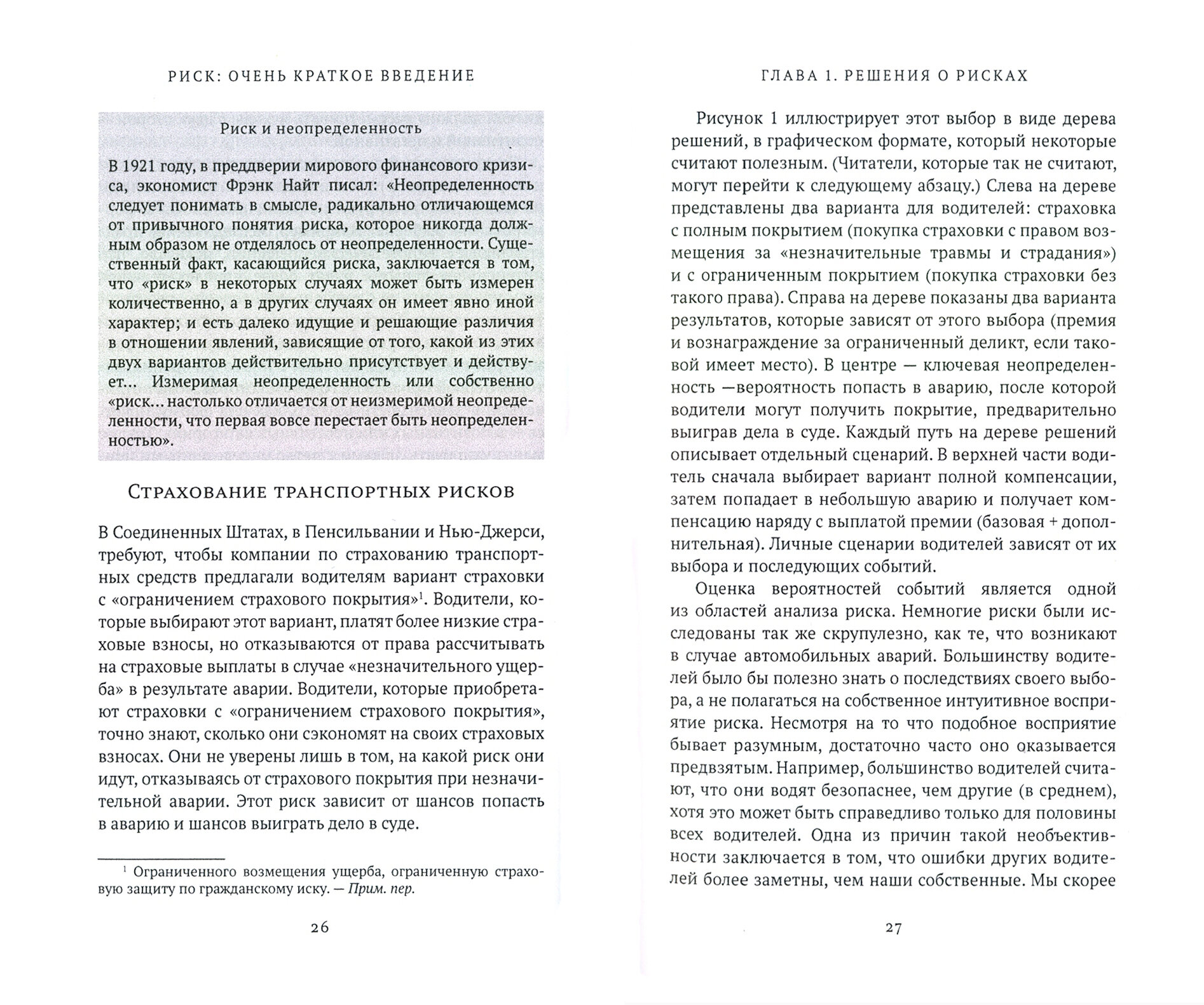 Риски повсюду. У них много источников, включая преступность, болезни, несчастные случаи, террор, изменение климата, финансы и сферу интимных отношений. Риски возникают в результате наших собственных действий или навязываются нам. В этом «Очень кратком введении» Фишхофф и Кадвани, опираясь как на естественно-научные, так и на гуманитарные соображения показывают, что объединяет все риски. Волнует ли нас потеря денег, здоровья, репутации или душевного спокойствия? Насколько мы заботимся о том, что происходит сейчас, или о том, что произойдет в будущем? Мы проявляем беспокойство о себе или о других? Прежде чем принять решение о рисках, нам требуется тщательно обдумать, что для нас важно, привлекая прошлый опыт, научные знания и учитывая неопределен-ности, связанные с будущим.
