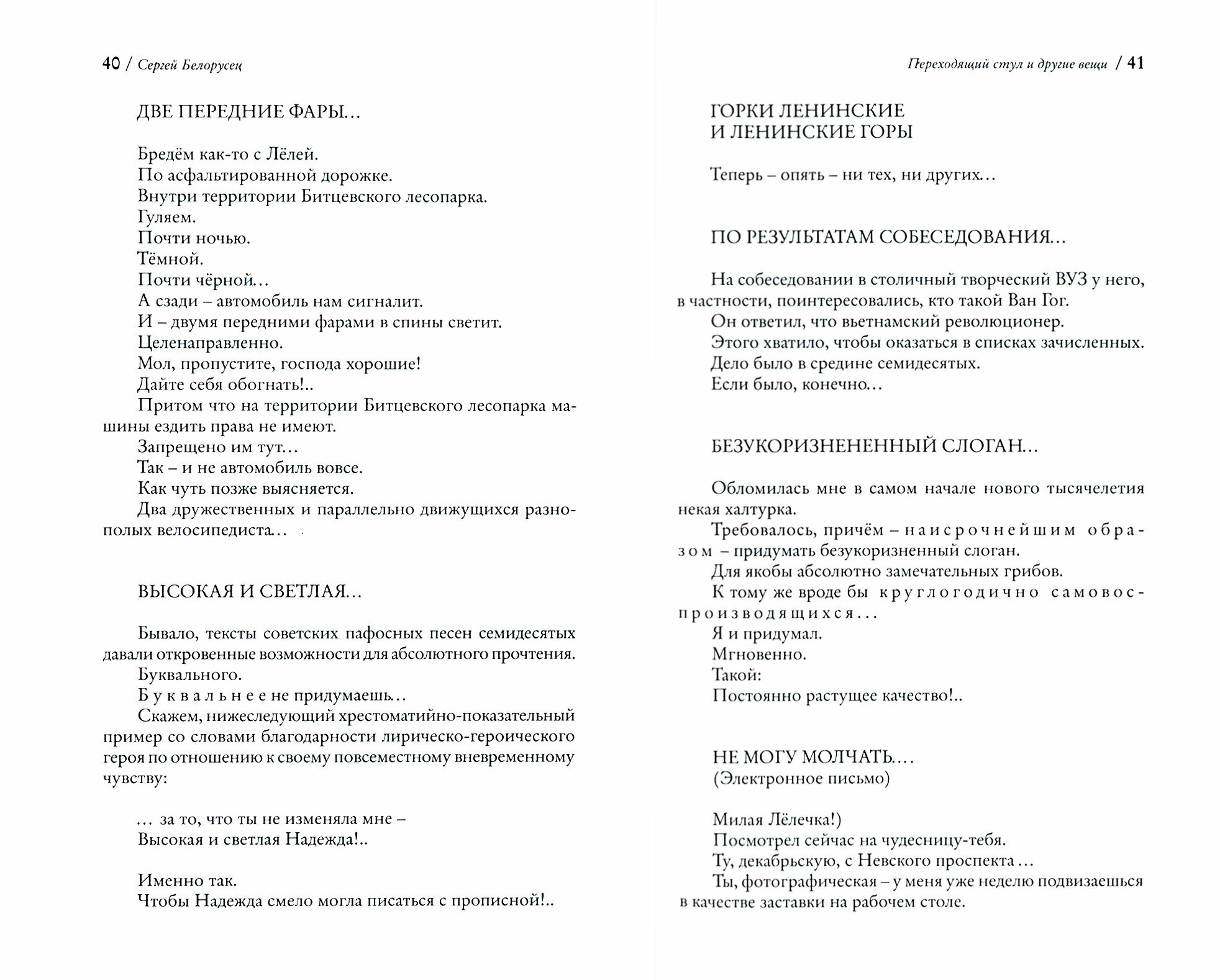 В обширный том органично вошли как изящная малая проза Сергея Беларусца, так и его емкие (по большей части) кротккие стихи. Это своебразное авторское избранное за отчетный период , включающий в себя всю двенадцатую пятилетку его писательской творческой жизниотмеченную, между прочим, сежеиспеченным дипломом финалиста стихотворной номинации Международной премии имени Фазиля Икандера. А еще венчающей двенацатую пятилетку человеческой жизни Сергея Белорусца 2019 год - год шестдесятилетия поэта широко известного также своей дошкольно-школьной "Веселой аРИФМетикой"