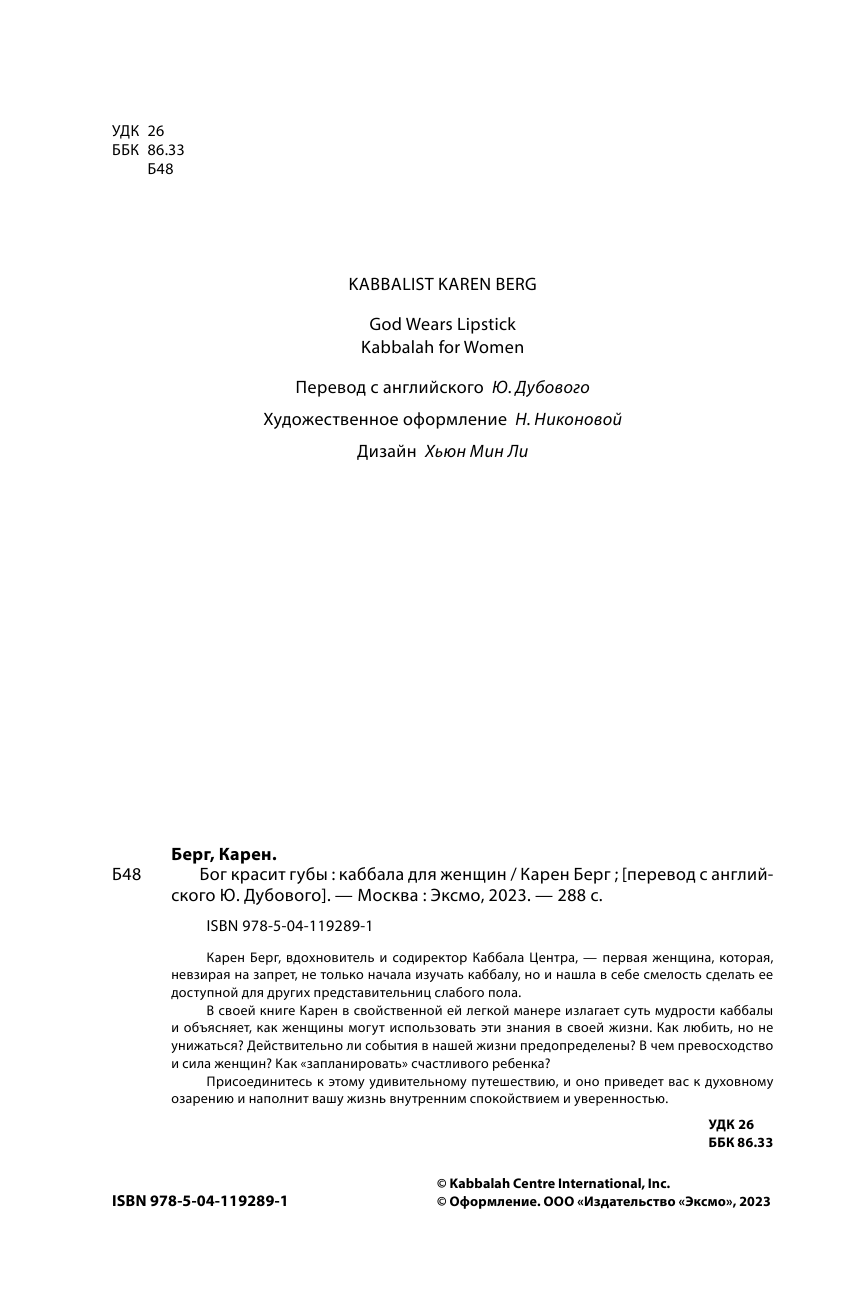 Бог красит губы. Каббала для женщин (Карен Берг); Эксмо, 2022