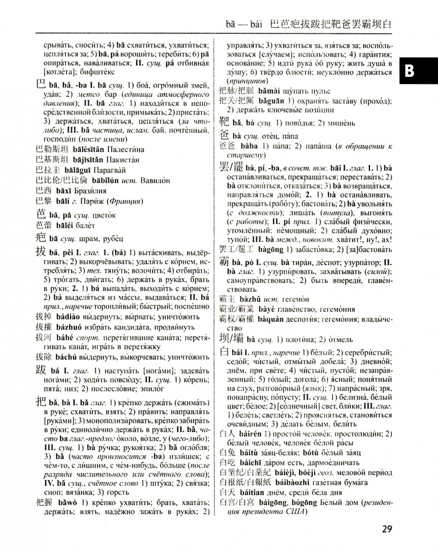 Хороший универсальный словарь для изучения китайского языка. Вот это издание включает в себе все достоинства наиболее полного, подробного и понятного словаря для любого уровня языковой подготовки. Большой объем наиболее употребительных слов и устойчивых словосочетаний и оборотов китайского языка. В китайско-русской части слова расположены по алфавиту в соответствии со звуковой латинской транскрипцией пиньинь, все слова и выражения приводятся в иероглифическом письме и в пиньинь. Есть и удобный указатель для поиска слов по ключевым иероглифам.