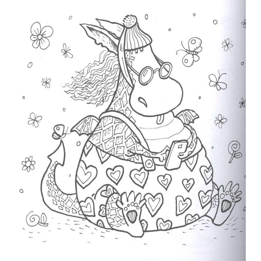 Чудесная раскраска с очень смешными драконами! Если не лить много воды, то можно использовать акварель. Гелевые ручки с блестками сильно протекли на другую сторону, но может это только мои такие, нужно конечно же пробовать) Бумага не очень плотная наверное 100-120г/м. Книга на скрепках.