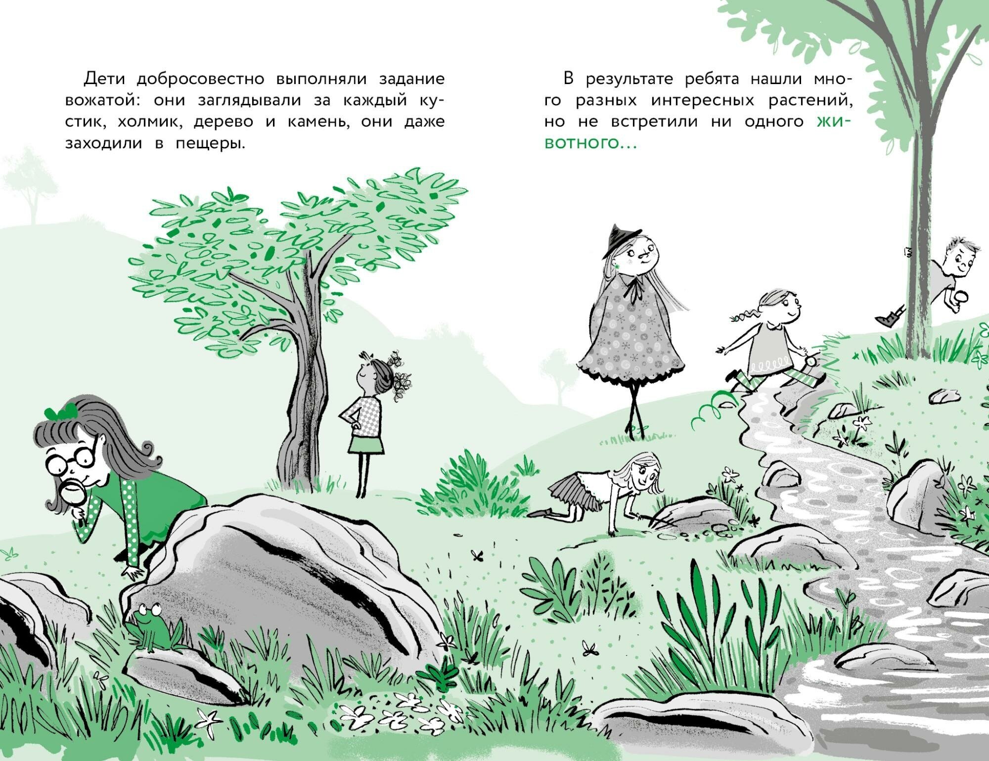 Ну а затем дети отправились в лагерь хаоса, где их сопровождала вожатая Кабанелла Джонс. Бабушка помогла детворе пройти все испытания и выполнить задания без ошибок. А еще она встретила своих подруг – таких же бабушек-ведьм, и они посоревновались друг с другом в колдовстве! А это, скажу я вам, еще то приключение!