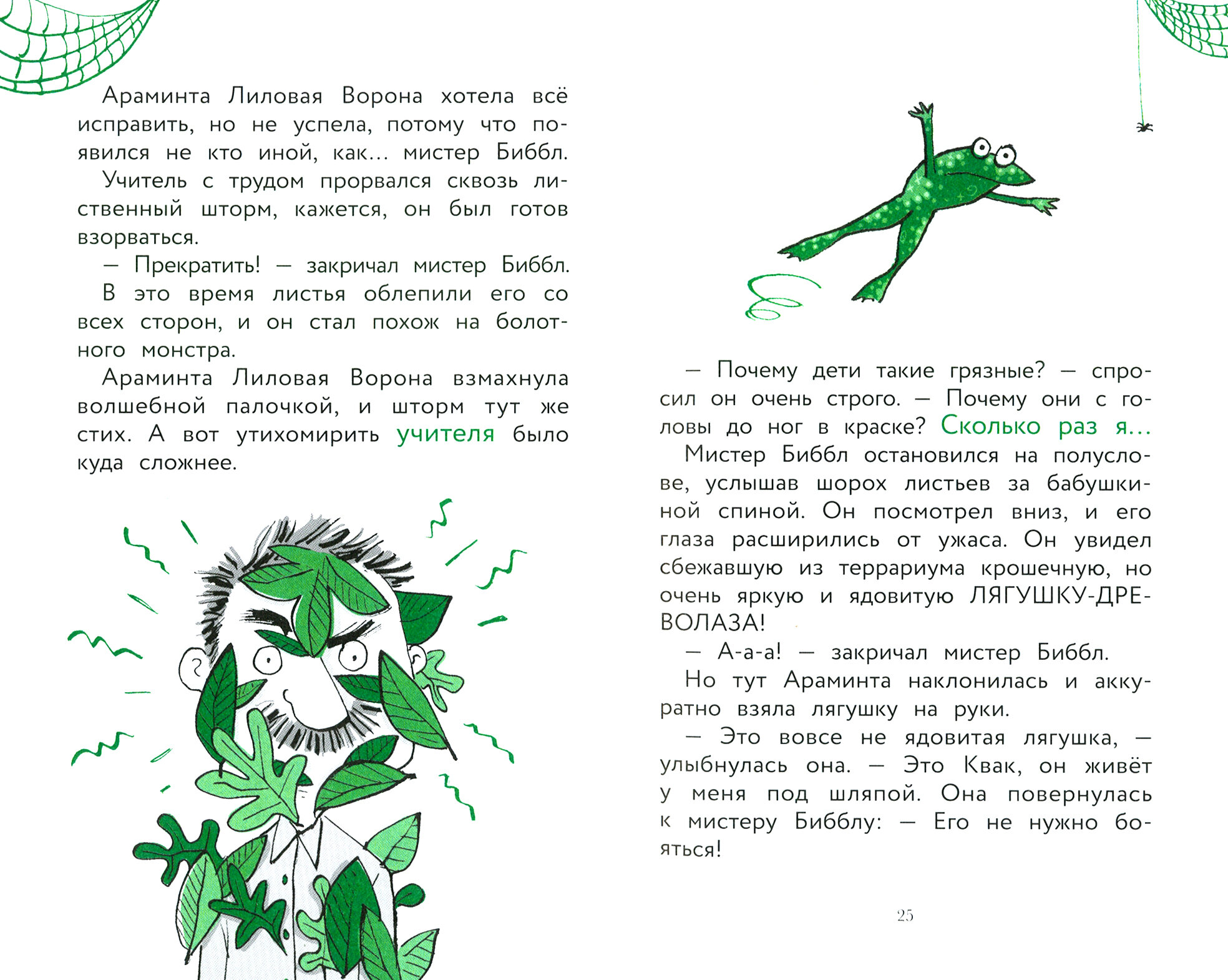 Лакированная обложка, бумага офсет, серийное оформление, рисунки выполнены в черно-серо-зеленой гамме (такой выбор цвета сразу заставляет нас задуматься о колдовстве, потому что напоминает колдовское зелье!). Книги можно рекомендовать деткам, которые учатся или только-только научились читать. Текст разделен на отдельные рассказы (в книге три рассказа), а рассказ разбит на главы. То есть объем для чтения небольшой. Текст – четкий, крупный. Ключевые слова выделены другим шрифтом. Рекомендую для чтения 6+.