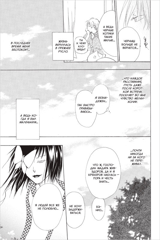 Книга в твёрдом переплёте, очень нравится, переплёт лучше чем у манги Бездомный бог, листать удобнее, вся страница видна без угрозы разломать переплёт. История неторопливая, рисунок простой, но этим и подкупает. У автора-художника получилось душевно. Котя-сенсей прелесть.