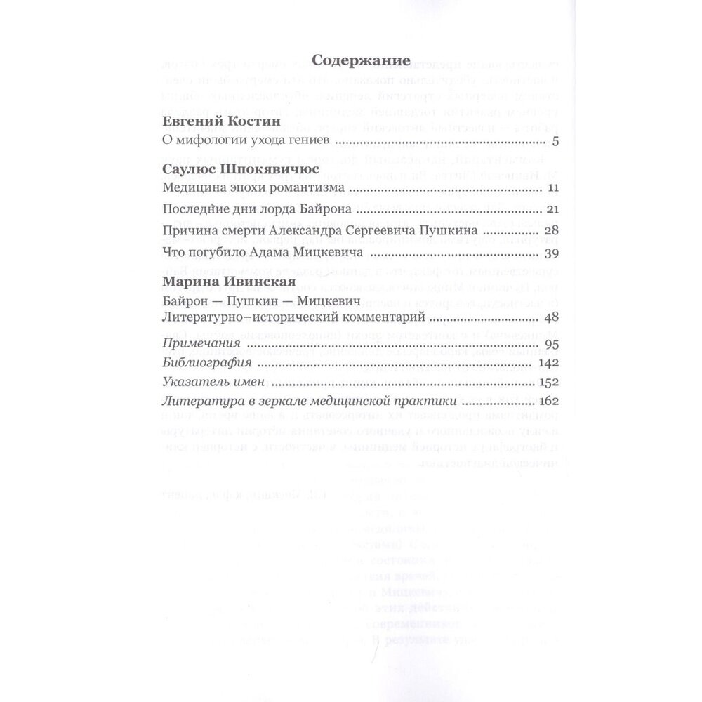 В книге известного врача С. Шпокявичюса (Вильнюс) и литературоведа М. Ивинской (Вильнюс) представлен неожиданный подход к исследованию обстоятельств ухода из жизни величайших гениев европейской и мировой литературы — Байрона, Пушкина и Мицкевича. Опираясь на достижения современной медицины, авторитетный клиницист (С. Шпокявичюс) уточняет причины заболеваний, ставших смертельными для Байрона и Мицкевича. Он также определяет характер гибельного ранения Пушкина, показывая, что в условиях медицинской науки той эпохи спасти "солнце" русской поэзии было почти невозможно.