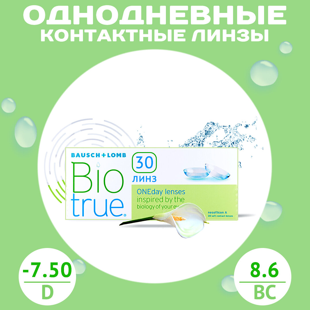 Контактные линзы однодневные для коррекции зрения biotrue oneday lens 30 шт 86 -125 bausch+lomb Bausch & Lomb (571744)