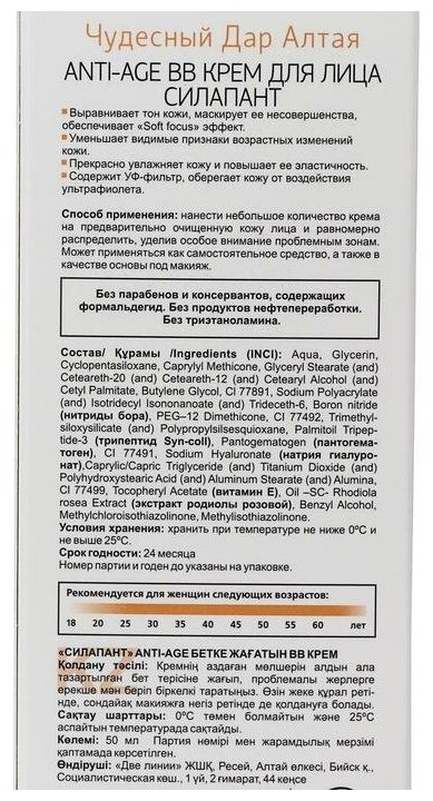 На сегодняшний день товар «Крем для лица anti-age bb silapant/силапант 50мл Две линии ПКФ ООО (487557)» можно купить с кешбеком в 1 магазине: Яндекс.Маркет