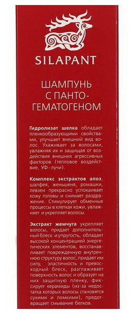 Уникальный компонент из рогов алтайского марала восстанавливает структуру волос изнутри, улучшает микроциркуляцию крови в коже головы, обеспечивая волосам достаточное количество витаминов и микроэлементов. Природные компоненты в составе шампуня питают и увлажняют волосы и оказывают на волосы выраженное anti-age воздействие.