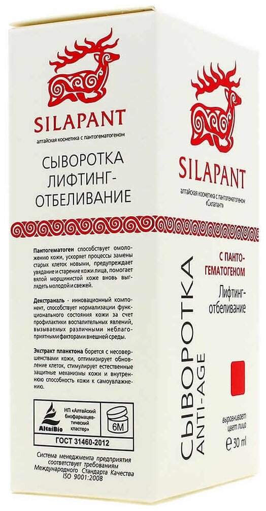 Сыворотка лифтинг-отбеливание от Silapant разработана специально для борьбы с пигментными пятнами, обладает выраженным Anti-Age эффектом, а активные компоненты состава благотворно влияют на кожу лица.