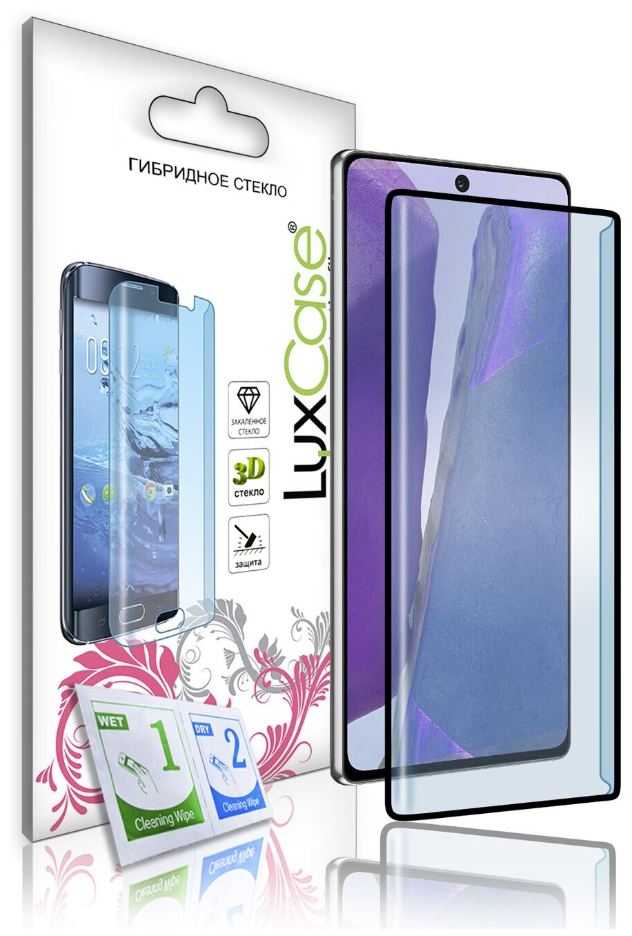 Защитная пленка LuxCase для Samsung Galaxy Note 20 / Гибридное стекло / Керамическое стекло / Черная рамка. Гибридное стекло - новый уровень защиты! Защитная пленка из материалов PMMA и PET на весь экран совмещает гибкость пленки ПЭТ и прочность стекла, повышая его срок службы и надежно оберегая экран ваших часов. Данная пленка легко устанавливается. Так же как и стекло, защищает экран от царапин и потёртостей. А благодаря олеофобному покрытию легко чистится. В комплект к пленке входят влажная салфетка, сухая салфетка и стикер для удаления пыли.