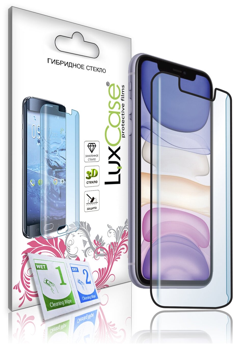 Защитная пленка LuxCase для iPhone 11 / XR / на Айфон 11 / XR Гибридное стекло На весь экран Черная Рамка. Гибридное стекло - новый уровень защиты! Защитная пленка из материалов PMMA и PET на весь экран совмещает гибкость пленки ПЭТ и прочность стекла, повышая его срок службы и надежно оберегая экран ваших часов. Данная пленка легко устанавливается. Так же как и стекло, защищает экран от царапин и потёртостей. А благодаря олеофобному покрытию легко чистится. В комплект к пленке входят влажная салфетка, сухая салфетка и стикер для удаления пыли.