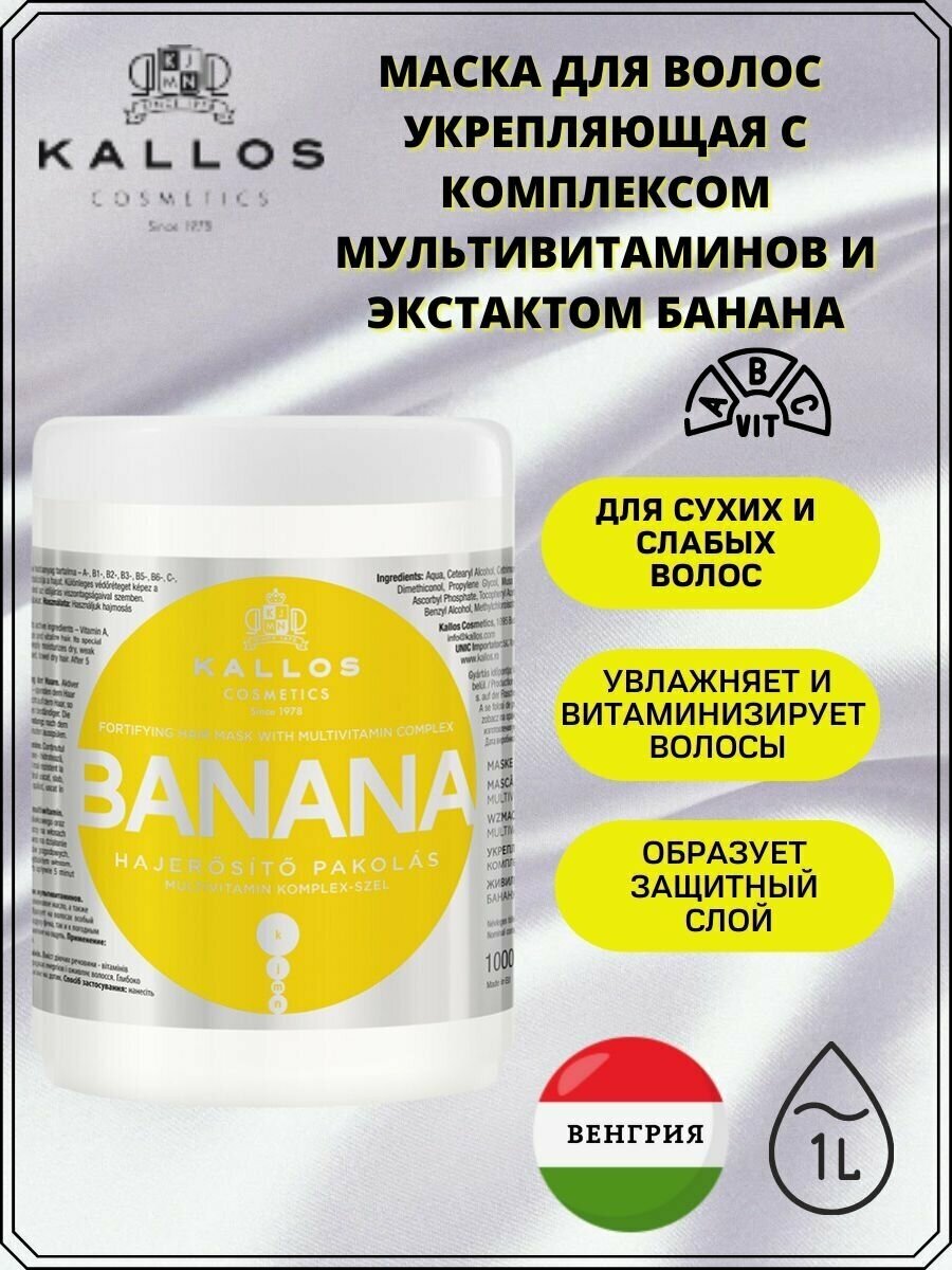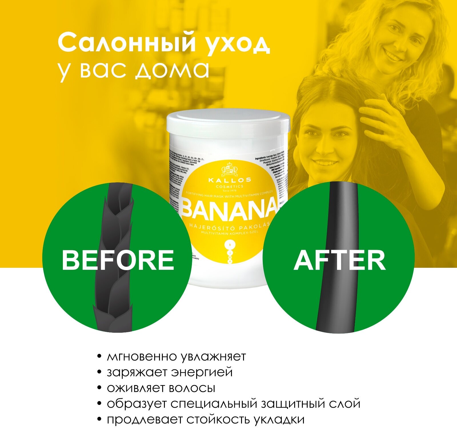 Маска для укрепления волос с комплексом мультивитаминов и экстрактом банана kallos kjmn 1000мл Каллос Косметикс (1395680)