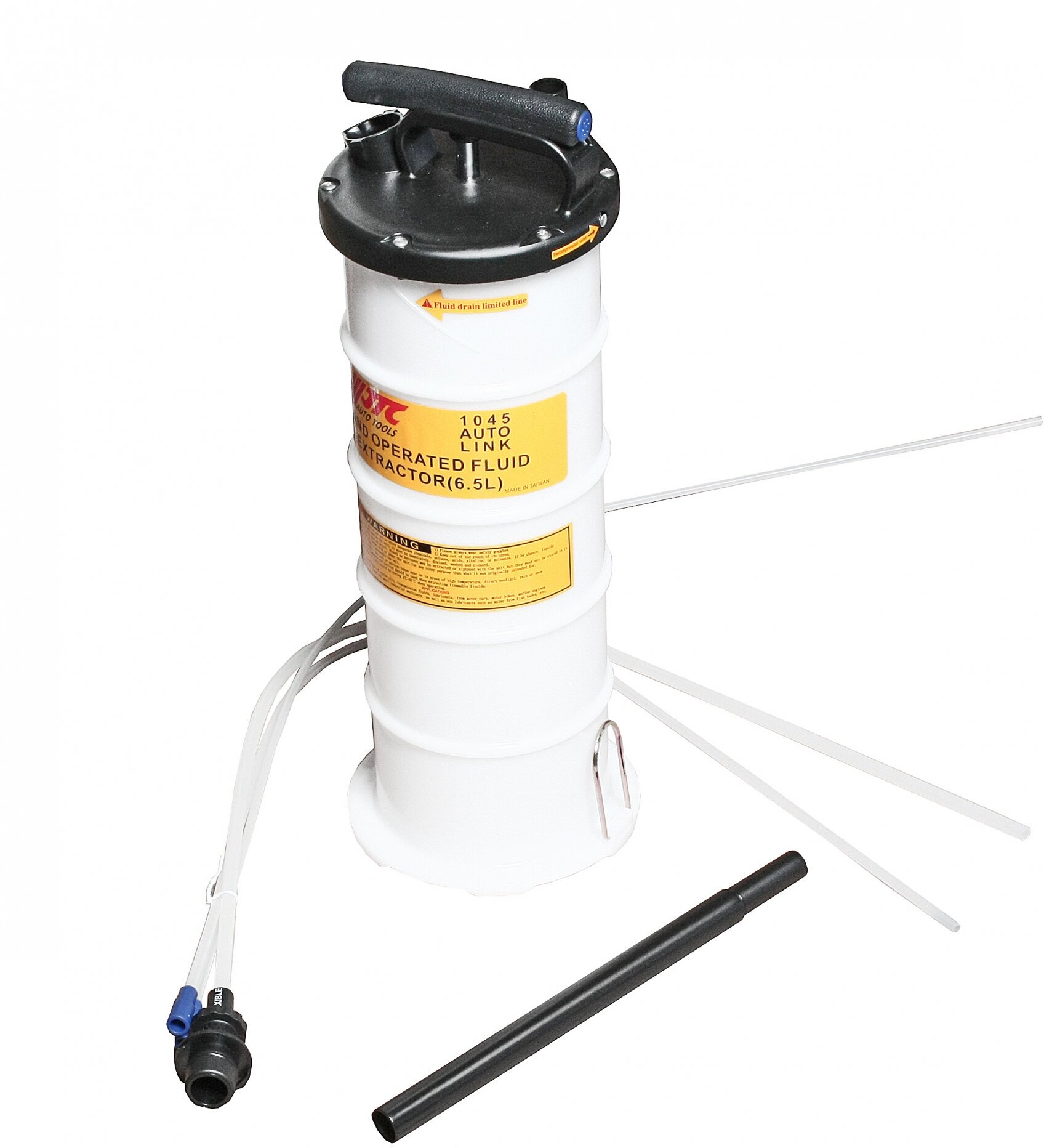 JTC- Приспособление для откачки технических жидкостей с ручным приводом, емкость 6.5 л предназначено для откачки технических жидкостей посредством разряжения, и опустошения емкости повышенным давлением. Разряжение создается при воздействии на ручной привод устройства. Имеет специальную запатентованную конструкцию для создания вакуума.Особенности- Предусмотрено место для хранения трубок.- Устойчивое основание для удобства работы.- Не дает искры при работе.- Возможность перекачки жидкостей: вода, моторные и трансмиссионные масла, тормозная жидкость.- Устройством для перекачивания технических жидкостей можно перекачивать трудновоспламеняемые, водонерастворимые жидкости при соблюдении максимально допустимой температуры 1-60°C.Технические характеристики- Габаритные размеры: 550/200/200 мм (Д/Ш/В)- Объем: 6.5 л- Вес: 3000 грКомплектация- Приспособления для откачки технических жидкостей с ручным приводом - 1 шт- Шланги: B: Ø10x1000 мм; C: Ø7x1000 мм; D: Ø6x1000 мм - по 1 шт. каждого- Трубка для хранения шлангов- Проволока для очистки шлангов - 1 шт