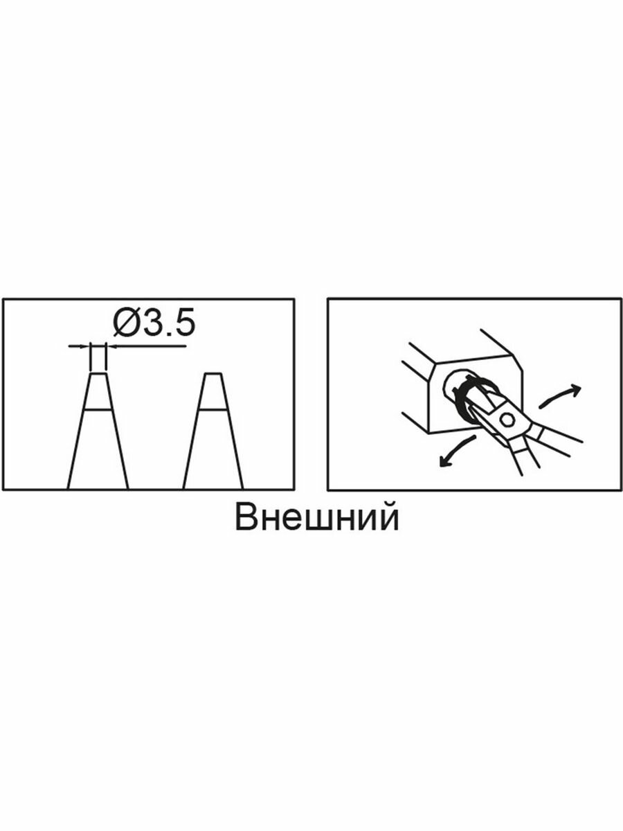 Щипцы для демонтажа стопорных колец. Группа специального шарнирно-губцевого инструмента, применяемого для производства работ, связанных с демонтажем и установкой стопорных колец. По области применения данные инструменты разделяются на два типа: щипцы для внутренних стопорных колец и для внешних.Специальные щипцы для стопорных колец больших диаметров (165-300 мм) с отверстиями 4.5-5.5 мм. серии "Р99" применяются в качестве крепежных элементов в конструкциях тяжелой автотракторной и сельскохозяйственной техники, в строительстве и продукции машиностроения. Щипцы снабжены реечным фиксатором положения губок и длинными рукоятками, обеспечивающими передачу большого усилия на детали. Особенностью конструкции является накладные, закрепленные механически рабочие части изделий.