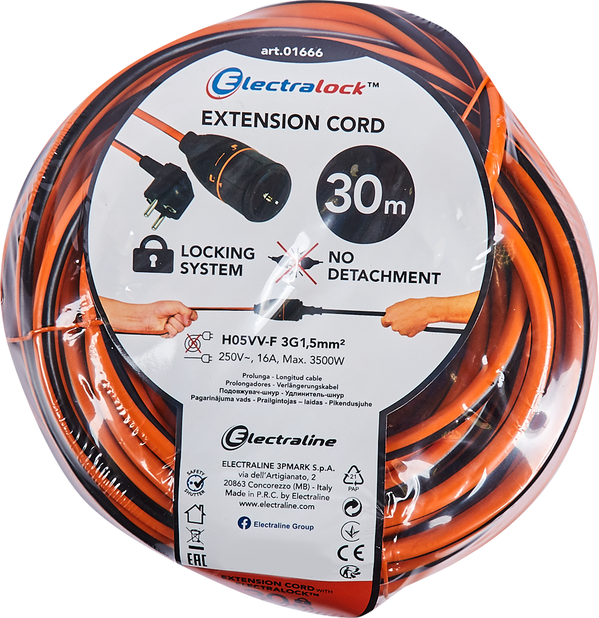Удлинитель-шнур с замком Electraline 30м 3х15 мм2 None