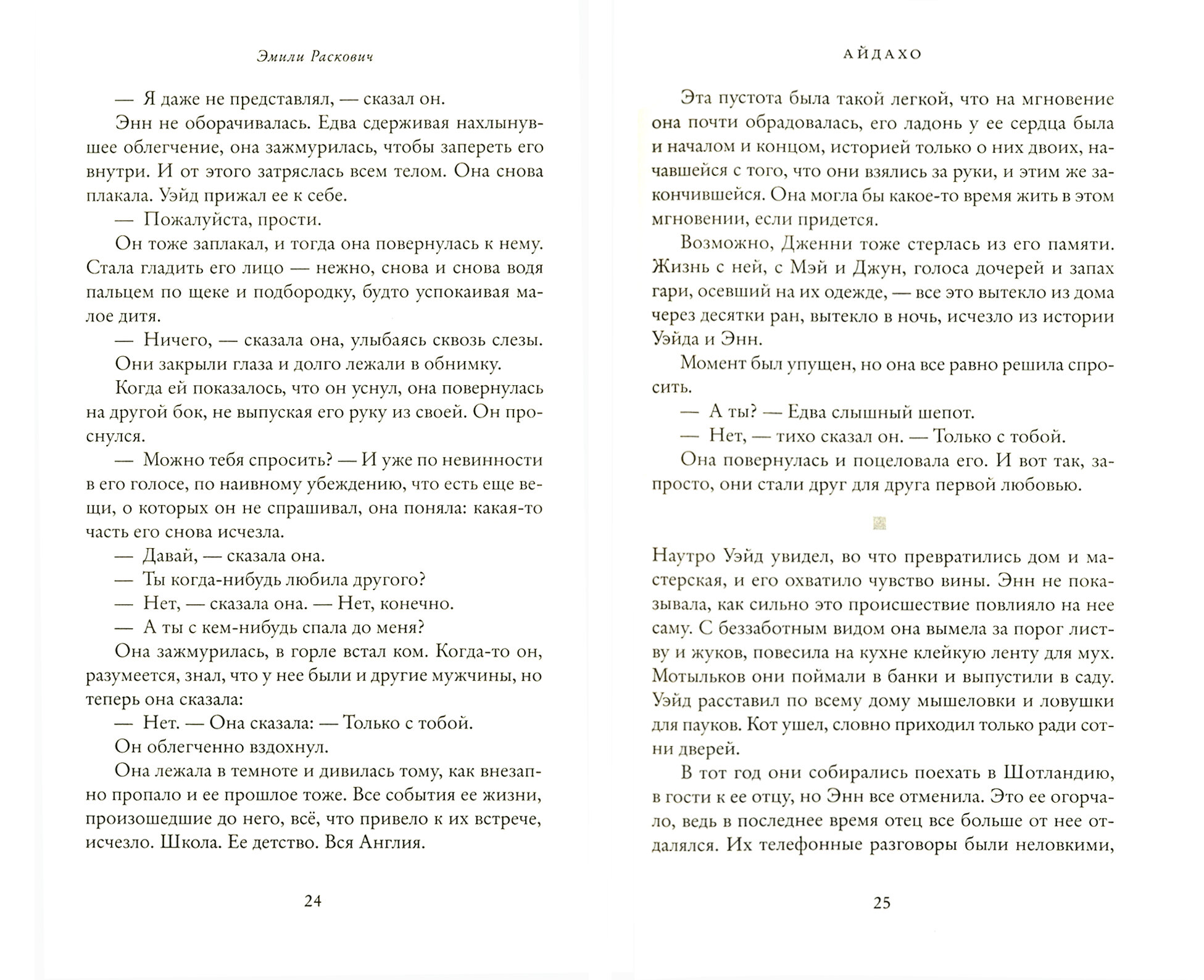 Мощный дебютный роман о любви и прощении, о памяти и беспамятстве. Энн и Уэйд ведут герметичную жизнь в суровых условиях Северного Айдахо. Их связывает не только любовь, но и трагедия, разрушившая первую семью Уэйда. А также память, которая постепенно покидает Уэйда. Энн пытается собрать ее крупицы, осколки чужой и загадочной драмы. Поэтично написанная история открывается с разных ракурсов - Энн, Уэйда и Дженни, которая уже много лет находится в тюрьме. Постепенно Энн реконструирует то давнее событие, трагичное и таинственное, сломавшее и Уэйда, и Дженни. В диком эмоциональном ландшафте, сохранившем прошлое в памяти Уэйда, Энн должна в одиночку понять семью, которую она никогда не знала.