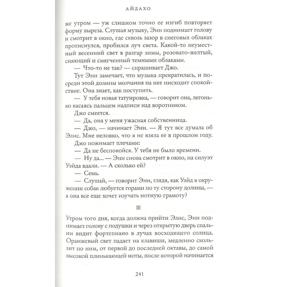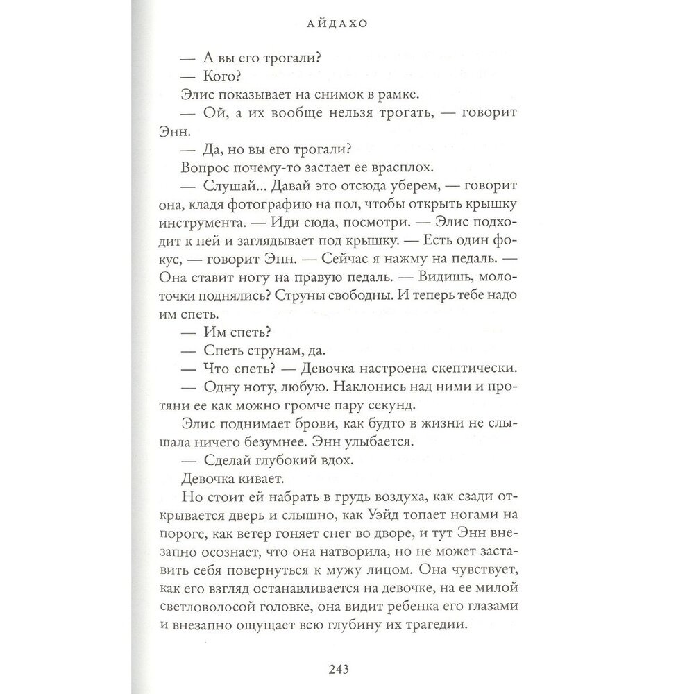 Сейчас книга «Айдахо» в топ-списках к прочтению. Есть за что её включать, помимо уже упомянутой премии. Не знаю, как описать сюжет, чтобы вы прошлись по повествованию сами, без спойлеров. Кажется, это просто невозможно. Поэтому ловите подборку слов: