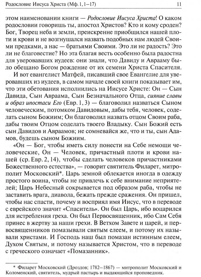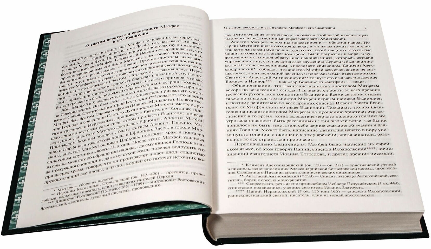 Предлагаем вниманию благочестивого читателя новое, полное издание толкования Святого Евангелия от Матфея, составленного на основе «Троицких листков», издававшихся в Троице-Сергиевой Лавре в XIX веке, и доработанное епископом Мефодием (Кульманом) в 1943 году. Текст книги содержит разъяснение всех глав и стихов Евангелия от Матфея словами лучших православных экзегетов — толкователей Священного Писания. Это учители Церкви разных эпох и народов: святители Афанасий Великий, Иоанн Златоуст, Василий Великий, Григорий Нисский; преподобные Иоанн Дамаскин, Исидор Пелусиот, Иоанн Кассиан Римлянин; блаженные Августин, Иероним Стридонский, Феофилакт Болгарский; византийский богослов Евфимий Зигабен; русские святители и богословы Димитрий Ростовский, Филарет Московский, Феофан Затворник, Иннокентий Херсонский, Филарет Черниговский, архиепископ Никифор Астраханский и другие.