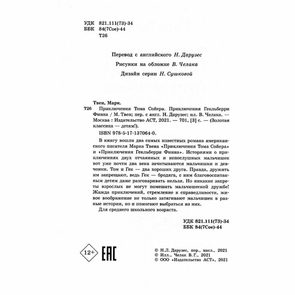 Сервис сравнения цен СкидкаГИД предлагает сравнить цены на товар «Книга: Приключения Тома Сойера. Приключения Гекльберри Финна (Золотая классика - детям!); АСТ, Малыш, 2021»