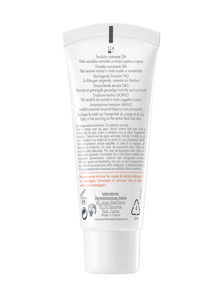 Эмульсия для нормальной и комбинированной чувствительной кожи, склонной к локальным и/или диффузным покраснениям, ощущением жжения и дискомфорта. Уникальная комбинация TRP- REGULIN(TM) и термальной воды Авен быстро успокаивает кожу, снимая ощущение жара и дискомфорта. Декстран сульфата улучшает микроциркуляцию, уменьшая покраснения кожи. Масло понгамия из Ботанической лаборатории Пьер Фабр помогает сохранять баланс микрофлоры кожи. Наличие солнцезащитного фактора SPF30 обеспечивает защиту от воздействия лучей UVA и UVB. Можно использовать как базу под макияж.