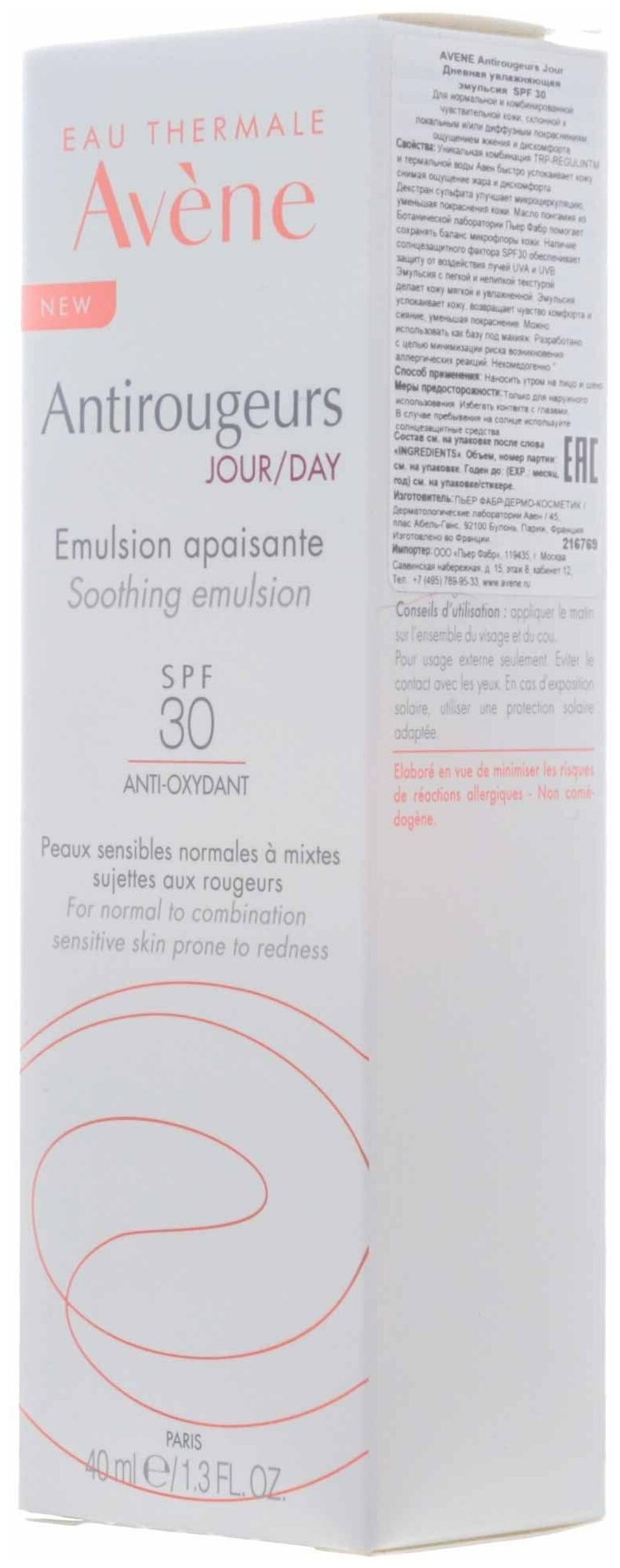| Коллекция | Avene Antirougeurs SPF30 |