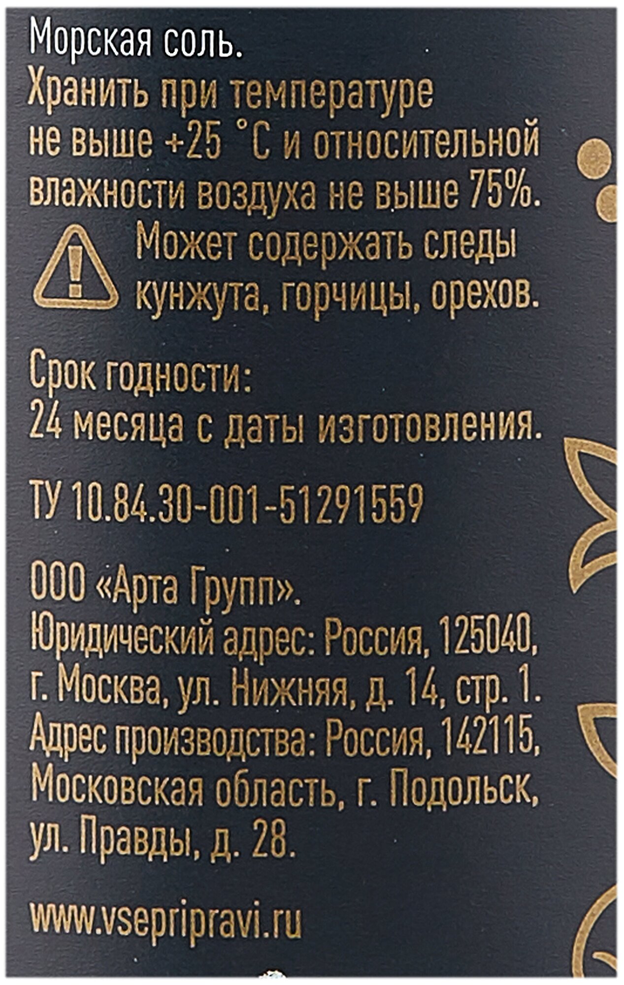 | Состав | чеснок сушеный (гранулы); соль морская |