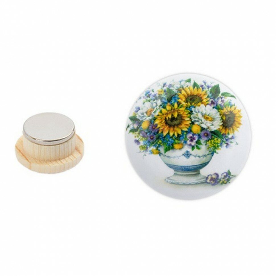 В набор входит: 1 шт. Размер: диаметр - 2,5 см. Производитель: Gamma. Тип: односторонняя. Форма: круг. Материал: дерево, металл. Вид магнита: неодимовый. Сюжет: цветы.